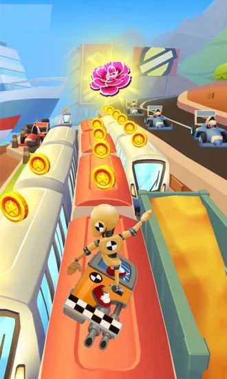 地铁跑酷最新版玩家需要在地铁轨道上躲避迎面而来的障碍物避免被抓到,被后头的警卫抓到游戏就结束了,路上会出现大量的金币和道具,可操作的角色非常多,一开始默认的角色是名为杰克的少年,部分角色需要商店购买解锁,每个角色都可以进行强化。地铁跑酷最新版游戏中的常见道具有吸附周围金币的磁铁、可以抵消伤害的滑板、可提高速度的跑鞋,场景会出现各个城市的建筑物和植物,让玩家奔跑的时候能欣赏周围的景色。玩法简单易懂,能锻炼玩家的反应能力,风格比较卡通,每天有不同的任务可以完成,不枯燥乏味。