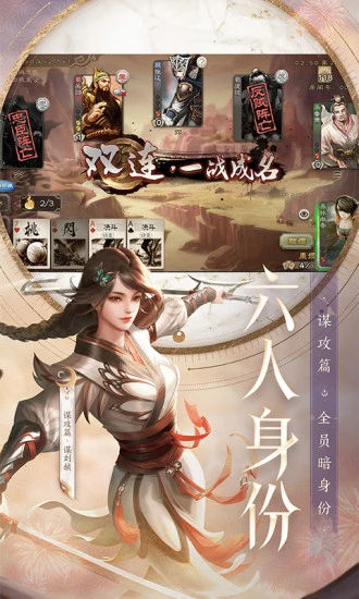 三国杀移动版是一款结合中国三国历史的卡片对决游戏,游戏中需要运用谋略在一轮轮的回合下进行操作,将敌对阵营的玩家击杀,一个不留,最后取得游戏的胜利,身份分为主公、反贼、忠臣、内奸,都有各自的胜利条件。三国杀移动版有着丰富的游戏模式,包含军争、国战、1v1、2v2、段位、巅峰赛等,玩法各不相同,可以见到许多眼熟的武将人物,如刘关张、五虎上将等,武将的技能都根据历史事迹进行设计,游玩过程中还能了解三国故事,非常的休闲快乐,一局大概要几分钟的时间,卡牌采用了水墨化的风格,设计非常精致,第一次游玩就能很快上手,快速了解每个武将的技能效果。