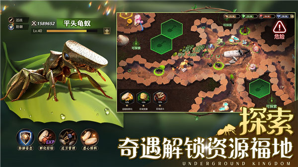 3、为了争夺资源, 扩张势力, 你必须组建强大的蚁队, 而一支强大的队伍里,除了众多高等级的兵蚁, 还需要变异蚁领队—特化蚁, 通过孵化异化卵可获得强大的特化蚁。在兵蚁和特化蚁的强强联手之下, 你的蚁队必将势如破竹, 粉碎你的敌人!
