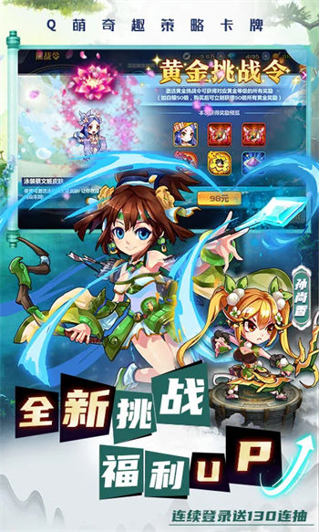 萌将风云官方版是一款策略三国卡牌回合制游戏,玩家能在游戏中体验到二次元与中国式风格相互碰撞产生的Q萌场景风格,众多三国经典战役的复刻,自由的收集武将卡牌,完美搭配阵容组合。萌将风云官方版多样化的趣味玩法在回合制的经典基础玩法上,加入简单的微操控制,使游戏更具耐玩趣味性,让战场局势时刻掌握在玩家的手心里。萌将风云官方版不在是简单重复的单人刷本模式,战斗中加入表情互动模式,将重复单调的模式变为趣味互动的社交模式,玩家能在游戏中认识更多志同道合玩家队友,隐藏在游戏中更多的趣味玩法,只有你想不到没有做不到。