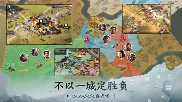 3.省去传统SLG打地铺路的过程,你可以自由行军快速抵达战场,尽情享受战斗乐趣。 本作以三国时代245座真实城镇展开同盟攻防战,通过城池之间的争夺,抢占要塞关口,前后战线拉锯,绕后突袭敌阵,感受多同盟攻防的战术博弈乐趣。