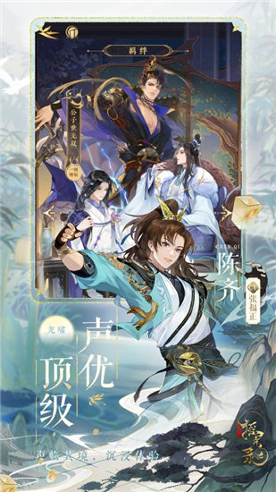 3.国内一线配音阵容倾情演绎,生动的live2D动态效果沉浸体验,相思笺,灵犀影,名士曲不期而遇的角色剧情……从书信到影音,带你浸入式感受乱世背景下的爱恨情仇。