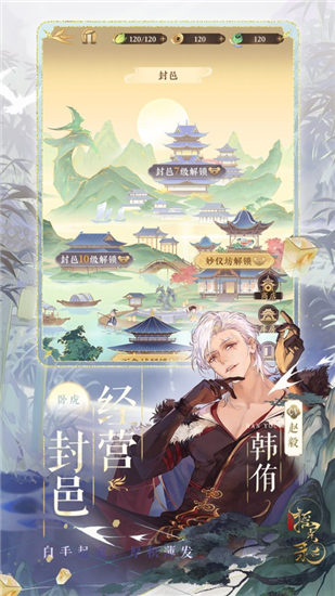 3.除了角色养成,你还能体验模拟经营的游戏乐趣,从一点一滴做起,经营自己的封邑,白手起家,厚积薄发。享受一些家长里短式的温情,打造自己的大成版桃花源记。