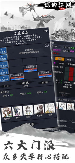你的江湖官方版是一款广受好评的文字武侠手游,这款游戏采用了经典的单机文字mud的玩法模式,玩家将进入武侠世界进行冒险,拥有非常丰富的剧情内容等你来探索,还有超多随机事件等你来解决,带给玩家更多文字冒险体验。你的江湖官方版游戏中拥有六大门派等你来加入,拥有海量武学功法等你来修炼,还有多维度的角色养成玩法等你来探索,带给玩家更多游戏体验。你的江湖官方版游戏中还有非常丰富的伙伴等你来招募,策略的队伍搭配,还有丰富的副本等你来挑战,喜欢的话千万不要错过,感兴趣的用户快来下载吧。