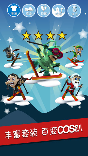 后期才会出现的装备,最稀有也是最强大。滑雪车上可以乘坐三名乘客,除了你之外,还能骑上企鹅,雪人,老鹰,也就是说最多可以承受四次冲击。不过滑雪车最好还是不要让它爆掉,因为到了后期滑雪车就是保命用的东西,雪崩在你的身后猛追不舍,稍不留神就会完蛋。但是滑雪车笨重,很难飞起来,这就要看你的技术如何了。安趣小编教你一个技巧,建议你让滑雪车经常保持喷火焰状态,这样就能冲开你无法飞跃的石头。还有就是要保持滑雪车上高朋满座,这样就可以借助动物来抵消冲击。第一台滑雪车是出现在屋子里,不要错过!