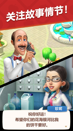 每过一关就可获得一颗星星,累积星星,在用星星换取花园资料资源,不断的解锁花园设施,还可以根据自己的喜好装饰花园,并迎接未知的曲折丰富的故事情节。