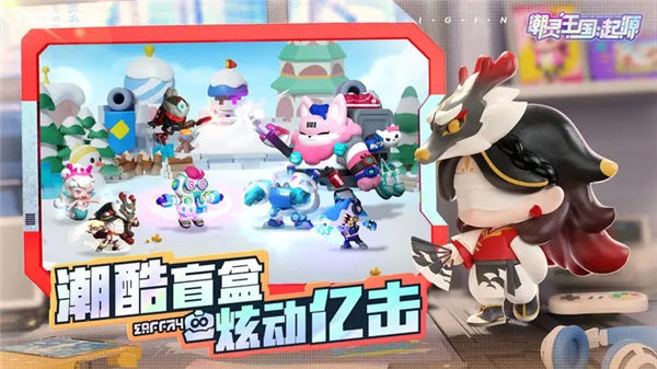 1.盲盒王国为世界观背景,在这里你将开启神秘的扭蛋机,邂逅多种风格鲜明身怀绝技的潮灵伙伴